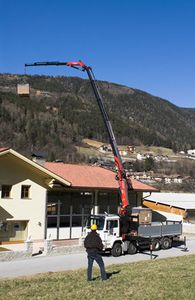 A knuckle boom truck ( mobile crane) is also known as a picker crane, loader crane and articulating crane.